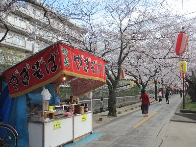 屋台と桜
